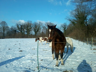Links und unten auch noch Nixe mit Hopi zusammen .. das war vor dieser Kolik, sie sie im Winter drauf hatte und kurz nach ihrem Umzug in den Stall meiner Tochter Esther.